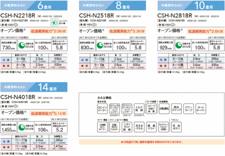 2018年コロナエアコンのNシリーズです。品番はCSH-N○○18Rで、○○の直後の「18」が2018年モデルを表しています。