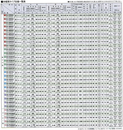 ナショナルエアコン仕様表(量販店ルート)
