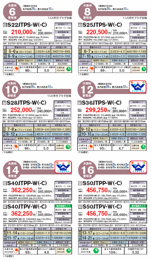 2008年ダイキンエアコンのPシリーズです。品番はS○○JTPS及びS○○JTPP、S○○JTPVで○○の数字の後「J」が2008年モデルを表しています。ここが「H」は2007年モデルです。類似機種として量販店向けモデルAN○○JPS、AN○○JPPという機種もあります。主な機能は同じですが、詳細はカタログ等をご覧下さい。