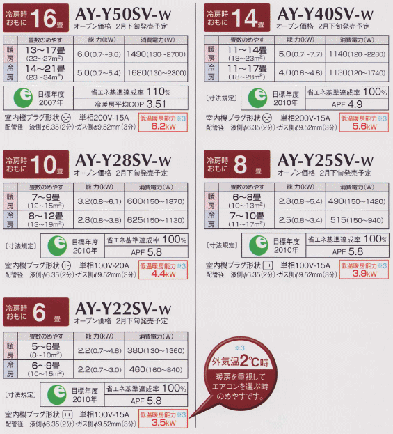 2009年シャープエアコンのY-SVシリーズです。品番はAY-Y○○SVで○○の数字の前が「Y」が2009年モデルを表しています。ここが「W」なら2008年モデルです。
