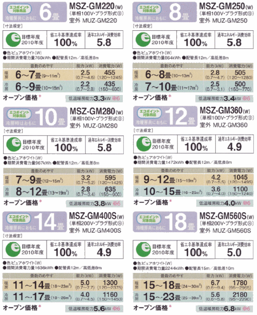 2010年三菱エアコンのGMシリーズです。品番はMSZ-GM○○0で○○の数字の後「0」が2010年モデルを表しています。