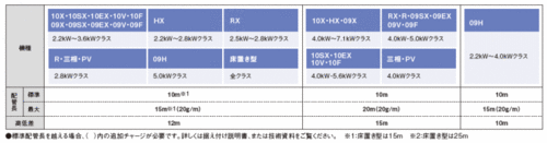 室内機と室外機の高低差や接続する配管の長さは下記をご覧下さい。(クリックで拡大)