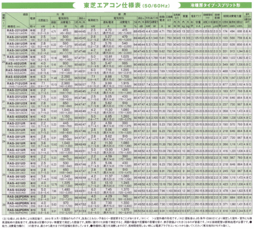 続きは→「2010年東芝エアコンの商品仕様一覧表」をご覧下さい
