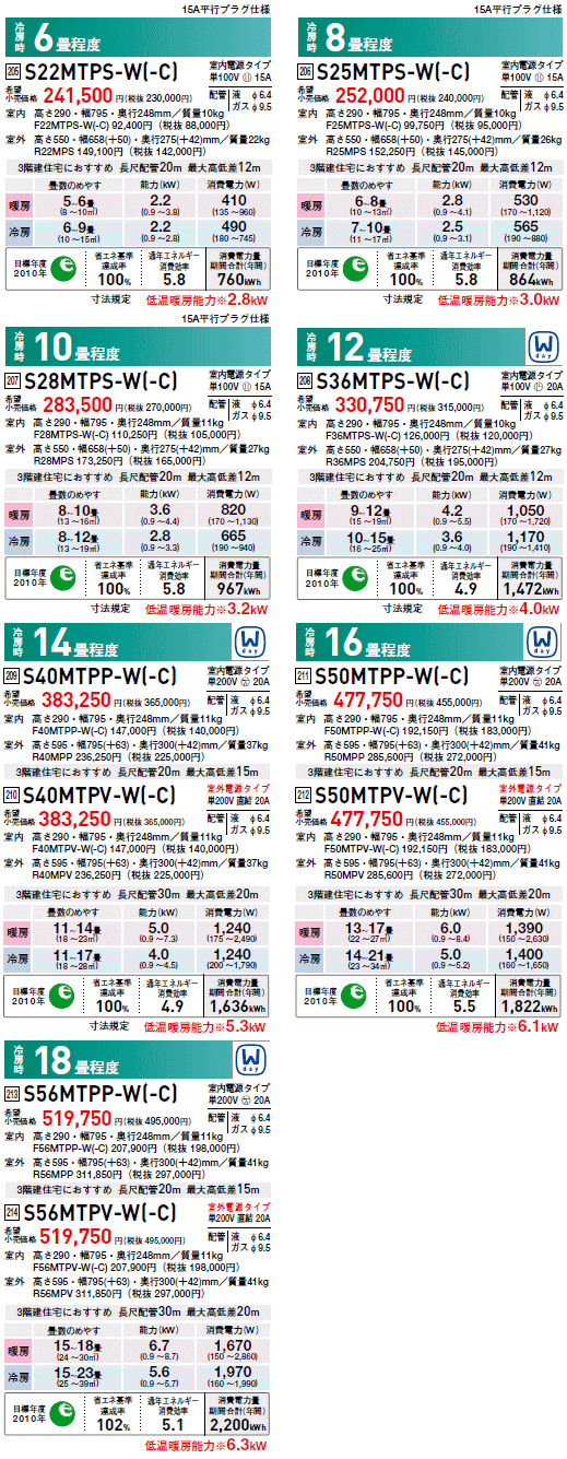 2011年ダイキンエアコンのPシリーズです。品番はS○○MTPS及びS○○MTPP、S○○MTPVで○○の数字の後「M」が2011年モデルを表しています。ここが「L」なら2010年モデルです。類似機種として量販店向けモデルAN○○MPS、AN○○MPPという機種もあります。主な機能は同じですが、詳細はカタログ等をご覧下さい。
