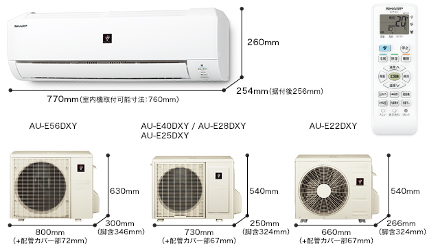 2015年シャープエアコンのE-DXシリーズです。品番はAY-E○○DXで○○の数字の前が「E」が2015年モデルを表しています。ここが「D」なら2014年モデルとなります。