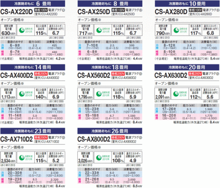 (※CS-AX○○0D2の様に、型番の末尾に「2」と有るのは200V専用エアコンモデルという意味です)